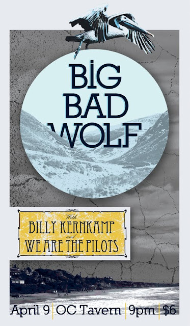 This Weekend in Orange County you won't want to miss up and coming rockers Big Bad Wolf. They will be performing together for their fourth ever show. It's history in the making OCers! The band is comprised of the former members of Modern Subject and their music is a folky rock with a smidgen of pop infusions. A strong supporting cast will be on hand as well with We Are The Pilots and Billy Kernkamp on the bill as well. The shenanigans will begin tonight at The OC Tavern in San Clemente.